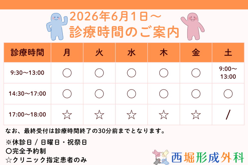 平素より西堀形成外科をご利用いただき誠にありがとうございます。